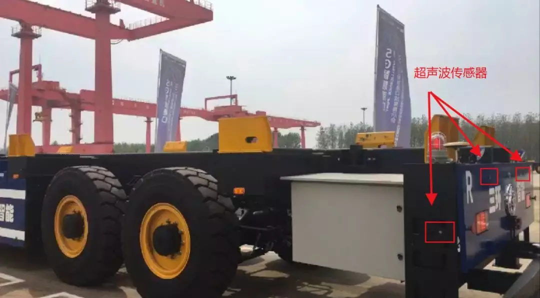 整臺集裝箱無人車用到12個超聲波雷達,實時傳輸數據到VMS,通過與激光雷達的配合可進行精準定位,精度控制在±5cm以內。