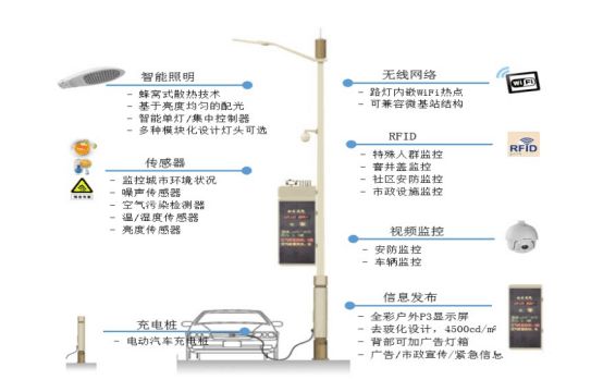 常見的路燈桿, 多立于城市中心各大交通要兩旁,有些路燈除了具有基本的照明功能外, 還能進(jìn)行風(fēng)力發(fā)電,可謂是一物兩用。而智能路燈桿作為一種前沿科技成果,與普通路燈比起來,自然在功能方面實(shí)現(xiàn)了多重升級,以前路燈桿空空的“肚子”里,如今已經(jīng)裝滿了“干貨”,變得“有料”起來。