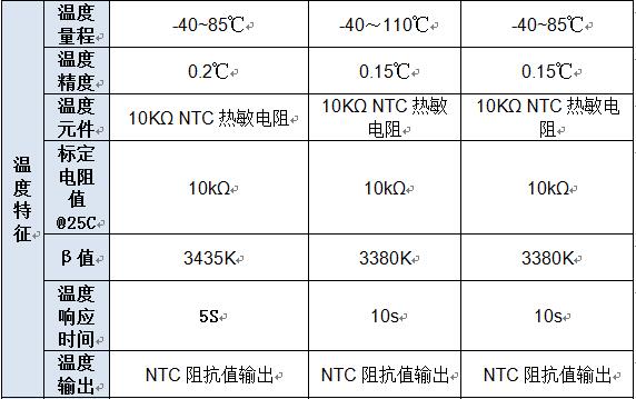 由于三款產(chǎn)品采用的熱敏電阻不一樣,所以輸出阻抗表略有差異,在進(jìn)行替換使用時(shí),需要稍微修改一下程序。 - 精度略有差異,但可以接受定制