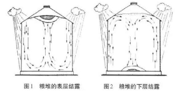靠近墻壁的結露:由于潮濕氣候影響,這種現象多半發生夏秋季節。原因是糧食一般是冬季低溫人倉,春季3、4月份低溫密閉,到夏季糧溫上升,遇到外界降溫時,在墻壁內側產生較大溫差而結露,如發現不及時,極易造成發熱霉變。