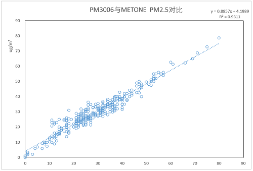 我國(guó)室外揚(yáng)塵網(wǎng)格化監(jiān)測(cè)經(jīng)歷了早期的β射線吸收法,到采用民用凈化器大量應(yīng)用的激光粉塵傳感器的過程。在使用過程中發(fā)現(xiàn),民用的激光粉塵傳感器不僅不能滿足-30~70℃室外環(huán)境溫度的全天候使用要求,同時(shí)還必須面對(duì)監(jiān)測(cè)場(chǎng)所,特別是建設(shè)工地經(jīng)常噴灑降霾的水霧影響,或者下雨潮濕的氣候環(huán)境等。這種環(huán)境下,水霧經(jīng)常被判斷為嚴(yán)重霧霾造成爆表。同時(shí)網(wǎng)格化室外粉塵監(jiān)控希望得到局部的可以與國(guó)家大氣環(huán)境監(jiān)測(cè)網(wǎng)數(shù)據(jù)具備的PM2.5/PM10/TSP的多項(xiàng)參數(shù)對(duì)比, 民用激光傳感器由于激光功率小,采樣流量小, PM10分辨率很低,無法提供準(zhǔn)確的PM10, 通常采用根據(jù)PM2.5的數(shù)字進(jìn)行比例計(jì)算,造成PM10監(jiān)測(cè)數(shù)據(jù)失真。四方光電研制的PM3003S、 PM3006激光揚(yáng)塵傳感器通過采用寬溫型大功率線型激光光源、API粉塵自動(dòng)識(shí)別技術(shù)、先進(jìn)的流道設(shè)計(jì)實(shí)現(xiàn)抗污染、大流量車規(guī)級(jí)采樣機(jī)構(gòu)、高濕度環(huán)境的水霧去除裝置等,低成本地實(shí)現(xiàn)了對(duì)室外揚(yáng)塵粉塵與β射線吸收法達(dá)到0.9相關(guān)系數(shù)的高精度測(cè)量。