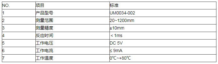 超聲波測距模組 UM0034-002 技術參數: