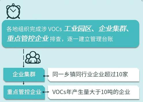 7月15日前,各城市根據本地產業結構特征、VOCs排放來源等,重點針對烯烴、芳香烴、醛類等O3生成潛勢大的VOCs物種,確定本地VOCs控制重點行業,組織完成涉VOCs工業園區、企業集群、重點管控企業排查,明確VOCs主要產生環節,逐一建立管理臺賬。同一鄉鎮及毗鄰鄉鎮交界處同行業企業超過10家的認定為企業集群,VOCs年產生量大于10噸的企業認定為重點管控企業。各地要重點排查以石化、化工、制藥、農藥、電子、包裝印刷、家具制造、汽車制造、船舶修造等行業為主導的工業園區;重點排查以制藥、農藥、涂料、油墨、膠粘劑、染料、日用化工、化學助劑、合成革、橡膠輪胎制造、有機化學原料制造等化工行業,使用溶劑型涂料、油墨、膠粘劑和其他有機溶劑的家具、零部件制造、鋼結構、鋁型材、鑄造、彩涂板、電子元器件、汽修、包裝印刷、人造板、皮革制品、制鞋等行業為主導的企業集群。