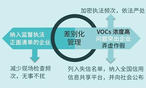 對VOCs濃度高的工業園區、企業集群以及治理進展緩慢、群眾投訴強烈、問題突出的企業,加密監督頻次,嚴格依法處罰。將超標問題突出、存在弄虛作假等違法行為的企業,向社會公布,并記入社會誠信檔案,納入全國信用信息共享平臺。