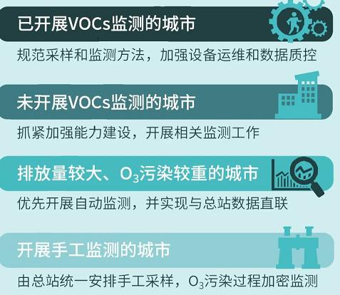 加快完善環境空氣VOCs監測網。加強大氣VOCs組分觀測,完善光化學監測網建設,提高數據質量,建立數據共享機制。已開展VOCs監測的城市,要進一步規范采樣和監測方法,加強設備運維和數據質控,確保數據真實、準確、可靠。尚未開展VOCs監測的城市,要參照《2020年國家生態環境監測方案》《關于加強揮發性有機物監測工作的通知》,抓緊加強能力建設,開展相關監測工作。VOCs排放量較大、O3污染較重的城市,應優先開展VOCs自動監測,并實現與中國環境監測總站數據直聯;開展手工監測的城市,按照中國環境監測總站統一安排的日期開展手工采樣,O3污染過程要加密監測頻次,探索主要VOCs物質濃度變化及傳輸規律。6-9月,重點區域、蘇皖魯豫交界地區及其他O3污染防治任務重的地區城市組織對排查出的工業園區、企業集群和典型企業的廠界或園區環境開展VOCs蘇瑪罐采樣監測,數據統一報送中國環境監測總站,并向社會公布。中國環境監測總站要加強數據匯總和綜合分析,編制重點工業園區、企業集群和企業環境VOCs蘇瑪罐采樣監測報告。生態環境部組織重點區域各省(市)對重點工業園區和企業集群開展走航監測,排查突出問題,評估整治效果。7月15日前,中國環境監測總站完成重點區域、蘇皖魯豫交界地區及其他O3污染防治任務重的地區國控環境空氣質量站點O3量值溯源和VOCs監測質控抽查工作。鼓勵各地開展VOCs來源解析,確定影響O3生成的主要VOCs物種和排放行業,提高精準治污水平。