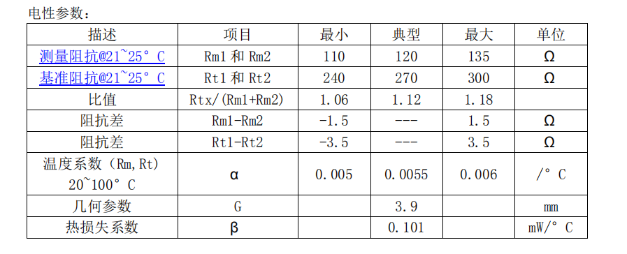 熱導式氣體傳感器 -MTCS2601參數: