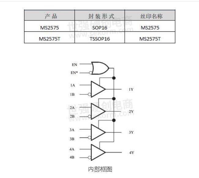 MS2575?/?MS2575T?是低功耗的?四通道差動線路接收芯片。用于平衡或非平衡的數字數據傳輸。四個接收器均具有使能功能,該功能提供了兩種可選輸入:高電平有效輸入和低電平有效輸入。通過三態輸出,該器件可直接連接至總線組織式系統。失效防護設計規定當輸入處于開路狀態時,輸出始終為高電平。MS2575采用SOP16封裝,MS2575T采用TSSOP16封裝。