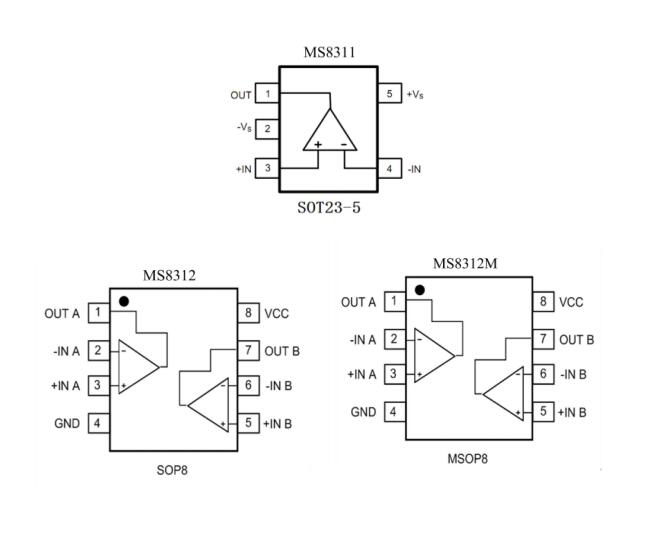 軌到軌輸入輸出運算放大器MS8311/M8312系列,低噪11.5nV/√Hz、高的開環增益120dB