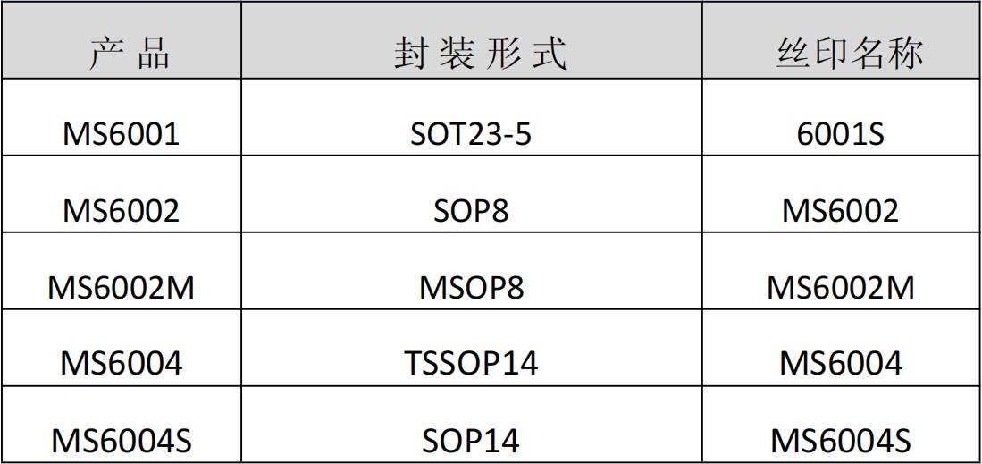 低功耗運算放大器 - MS6001/MS6002/MS6004 運算放大器具有極低功耗,軌到軌輸入輸出, 低的輸入電壓和低的電流噪聲。具體表現在可工作在幅度為1.8V到5V的單電源或者雙電源條件,低功耗和低噪聲使得 MS6001/2/4 能夠用在可移動設備上,輸入輸出的軌到軌擺幅的特性能夠被設計者用于 CMOS、ADCs、DACs、ASICs 的緩沖或其他對低功耗寬輸出擺幅的系統。