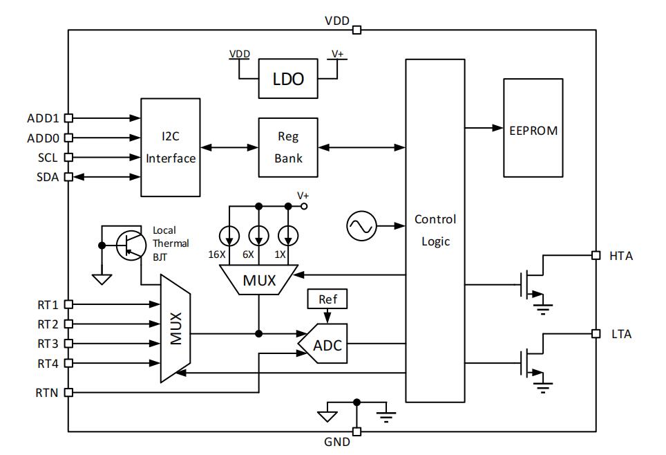 內(nèi)置5路測(cè)溫校準(zhǔn)系數(shù)的非易失性(NVM)存儲(chǔ)