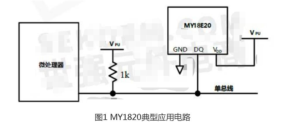 MY18E20在-10℃~85℃溫度范圍內測溫精度達到0.5℃,可以對環境溫度進行準確的溫度測量,為智能燃氣表計量誤差補償提供精確的參考溫度;待機功耗0.2uA,可以降低整機功耗,延長智能燃氣表電池的使用壽命; MY18E20有可編程的ID序列號,內部包含80bit存儲空間,用于存放用于信息,還可以自行設置高低溫報警閾值、溫度校準修正值以及自定義信息;MY18E20應用電路簡單,只需要外加電源即可,降低整機BOM成本,以下是MY18E20典型應用電路。