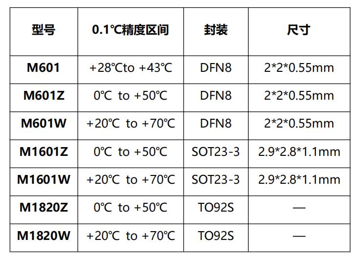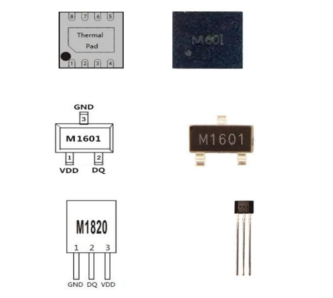 數字高精度溫度傳感芯片 - M601、M1601、M1820系列是工采網代理的國產品牌MYSENTECH推出的高精度數字模擬混合信號溫度傳感芯片。M601為體溫芯片,高測溫精度為+28°C到+43°C范圍±0.1°C;M601Z、M1601Z、M1820Z高測溫精度為0°C到+50°C范圍±0.1°C;M601W、M1601W、M1820W高測溫精度為+20°C到+70°C范圍0.1°C精度;用戶無需進行校準。溫度芯片感溫原理基于CMOS半導體PN節溫度與帶隙電壓的特性關系,經過小信號放大、模數轉換、數字校準補償后,數字總線輸出,具有精度高、一致性好、測溫快、功耗低、可編程配置靈活、壽命長等優點。溫度芯片內置16-bit ADC,分辨率0.004°C,具有-70°C到+150°的超寬工作范圍。芯片有唯一的64位ID序列號,在出廠前經過100%的測試校準,根據溫度誤差特性進行校準系數的擬合,芯片內部自動進行補償計算。為了簡化系統應用,芯片的ID搜索、測溫數據內存訪問、功能配置等均基于數字單總線協議指令,上位機微處理器只需要一個GPIO端口便可進行讀寫訪問。單總線通信接口通過共用一根數據總線來實現多節點傳感采集與組網的低成本方案,傳輸距離遠、支持節點數多,便于空間分布式傳感組網。可支持100個節點100至500米長的測溫節點串聯組網。芯片內置非易失性E2PROM存儲單元,用于保存芯片ID號、高低溫報警閾值、溫度校準修正值以及用戶自定義信息,如傳感器節點編號、位置信息等。M601系列(M601、M601Z、M601W)另有ALERT報警指示引腳,便于用戶擴展硬件報警應用。