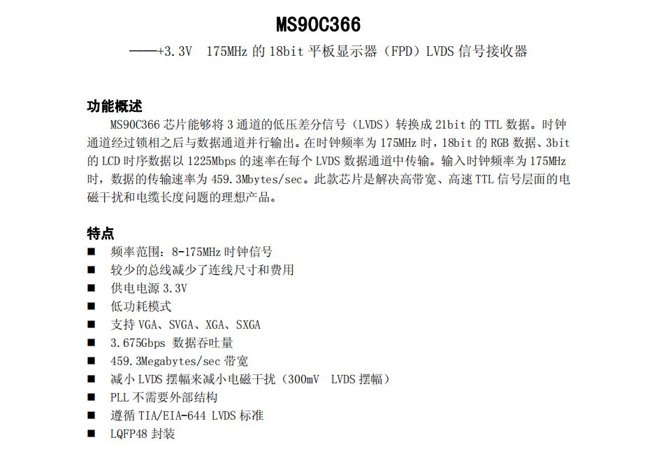 低壓差分傳輸接口芯片 -?MS90C366的特點(diǎn):