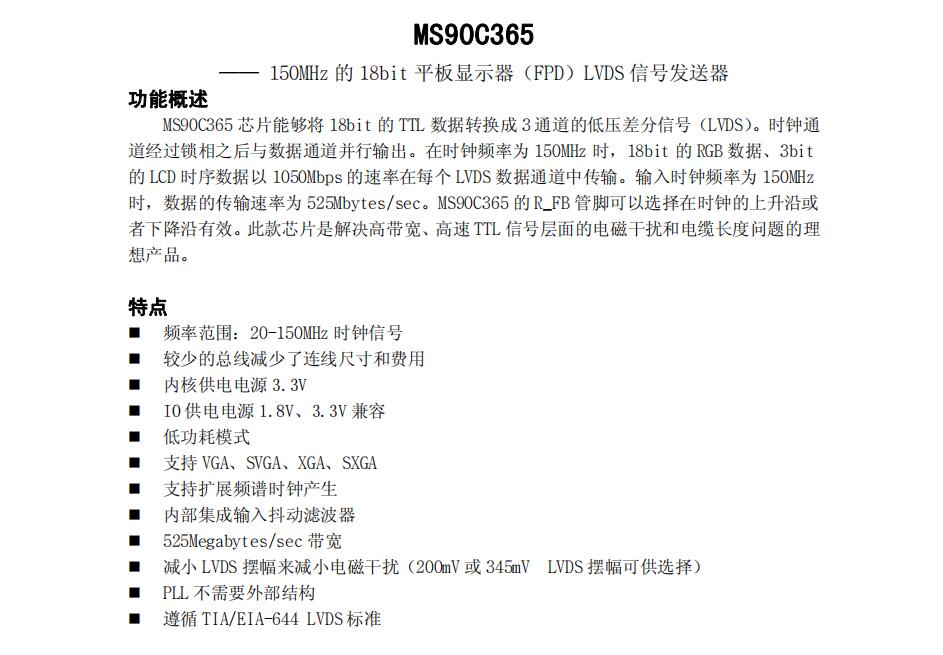 低壓差分傳輸接口芯片 -?MS90C365的特點(diǎn):