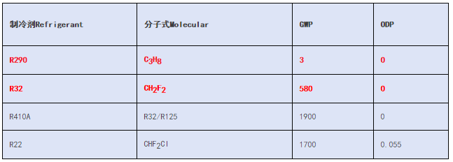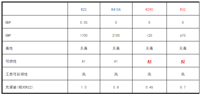 1、R32制冷劑全球變暖系數是R410A的1/3,較傳統的R410A、R22制冷劑環保,但R32具有一定的可燃性。