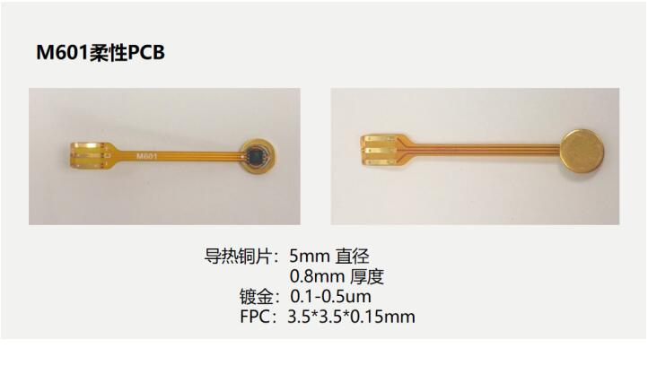 為了防止工作過程中其他發(fā)熱器器件干擾,便于適配不同產(chǎn)品結(jié)構(gòu)設(shè)計,同時,更貼近監(jiān)測物表面,敏源開發(fā)出和主板分離的M601柔性PCB。