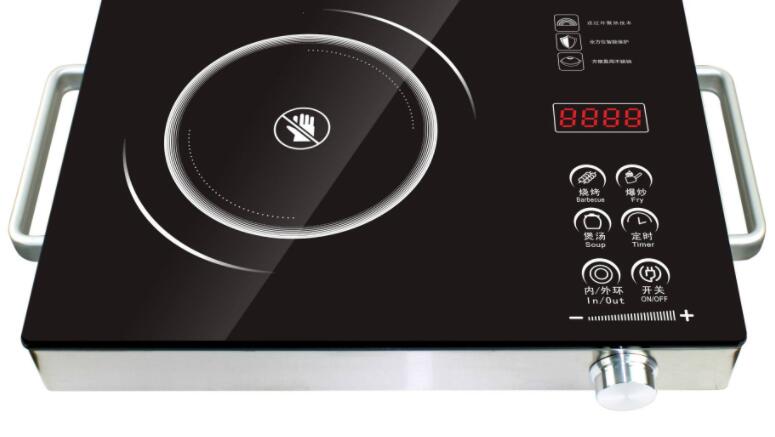 電磁爐的觸摸面板應用了感應原理:利用人體的電流感應進行工作 。用戶觸摸屏幕時 ,由于人體電場,用戶和觸摸屏表面形成以一個耦合電容, 對于高頻電流來說,電容是直接導體,于是手指從接觸點吸走一個很小的電流。這個電流分從觸摸屏的四角上的電極中流出,并且流經這四個電極的電流與手指到四角的距離成正比, 控制器通過對這四個電流比例的精確計算,得出觸摸點的位置確認指令。