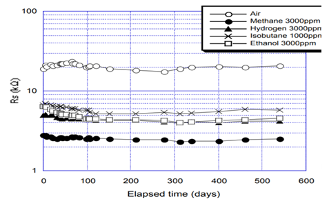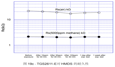 新國標在還有一項硅蒸汽測試,TGS2611帶有過濾層的,完全能夠滿足新國標的要求,新國標的測試標準是傳感器要能在10ppm的HMDS氣體中工作四十分鐘,放回空氣中誤差要在允許范圍內。而TGS2611堅持一周以上都是沒問題的。