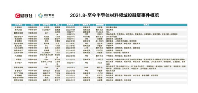 據星礦數據不完全統計,2022年以來,半導體材料公司投融資共有21起,已披露融資總額合計超過73.75億元。
