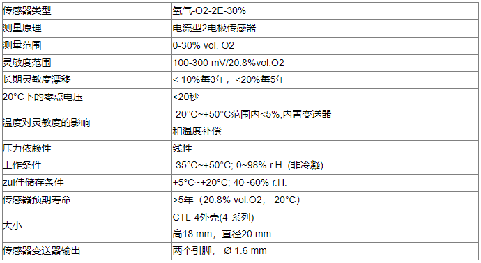 德國MST 氧氣傳感器 O2傳感器 參數(shù):