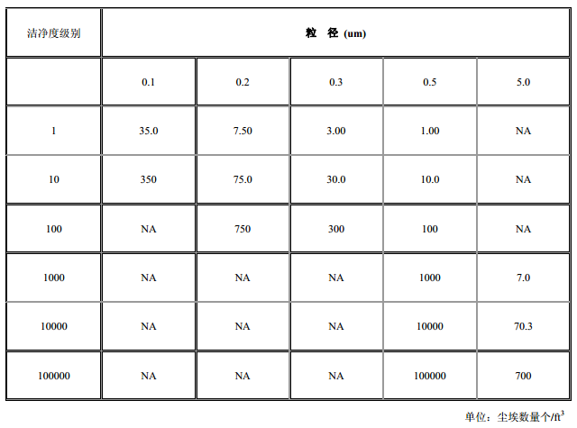 無塵室潔凈度參照標準