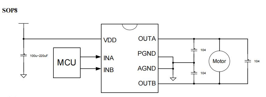 直流有刷電機驅動芯片SS6216應用電路圖: