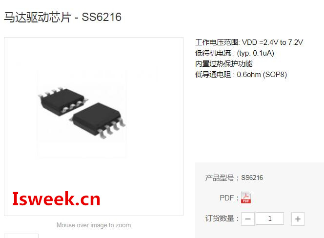 這是來自由工采網代理的國產直流有刷電機驅動芯片 - SS6216,這是一款各方面都很優秀的國產直流馬達驅動芯片,可以完美替代市面上的的SA8301和TC118S。
