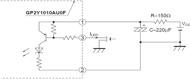 該傳感器具有非常低的電流消耗(大20mA,典型值11mA),可使用高達7VDC。該傳感器輸出為模擬電壓,其值與粉塵濃度成正比。