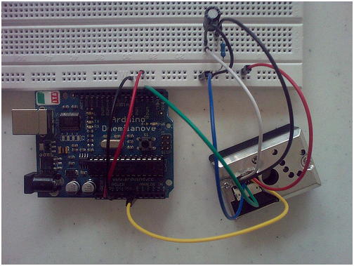 | 5 | Vo | –> | Analog pin 0 |