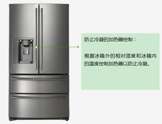 其次是濕度傳感器,濕度傳感器在冰箱內的作用主要體現在加熱器控制防止冷凝、制冰機的除霜風機、冰箱濕度控制、保鮮抽屜的濕度控制這幾個方面。