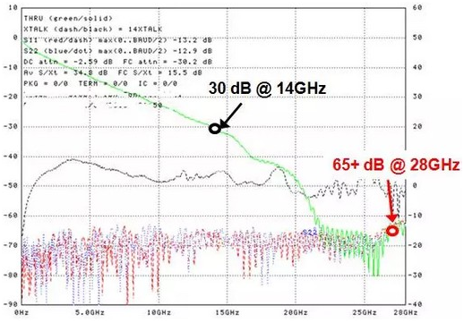 一般來說,真實世界中的信道都是低通特性的,到處都是小電容,所謂絕緣體中的分子在高頻情況下吸收電場能量,再加上金屬線中的趨膚效應,所以我們想要的高頻信號走不了多遠就不像樣子了,比如下面某信道的頻率特性(綠線)。