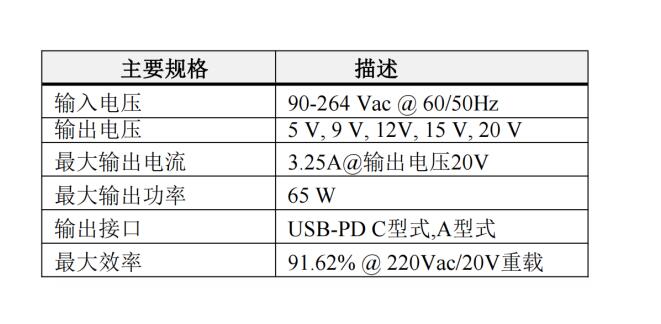 推薦一款來自臺灣美祿的快充電源設(shè)計方案,本電源模塊是65W1A2C界面,其輸出電壓由協(xié)議IC可以控制5V/3A, 9V/3A, 15V/3A, 20V/3.25A等電壓輸出,使用QR/DCM反馳式電路架構(gòu)于輸出20V重載時可達91.62%效率及功率密度可達1.5W/cm3,本系統(tǒng)采用同系列控制單晶片:QR一 次 側(cè) 控 制 IC 驅(qū) 動 MTC D-mode GaN FET(MGZ31N65-650V)、二次側(cè)同步整流控制IC及PD3.0協(xié)議IC)可達到較佳匹配。