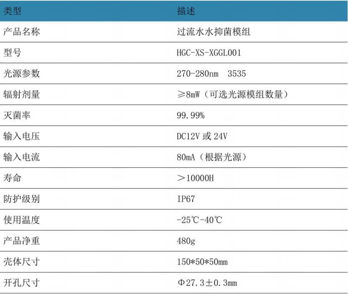 HGC-XS-XGGL001過流水抑菌模組是一款具有小體積、高轉化率特點的UVC LED殺菌模塊,可適用于絕大部分有靜態水殺菌需求的應用,如飲水機,咖啡機,加濕器等LED所發出的紫外線,可有效殺滅細菌,病毒,為日常生活提供安全潔凈的水源。
