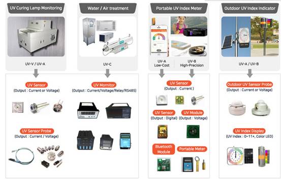 GaN材質的傳感器目前知名度比較高的是韓國Genicom的紫外線傳感器,傳感器的波段從200-510nm均有相對應的傳感器來檢測。