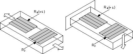 - R1和R3是測(cè)量收縮應(yīng)變(–e)的工作應(yīng)變計(jì)