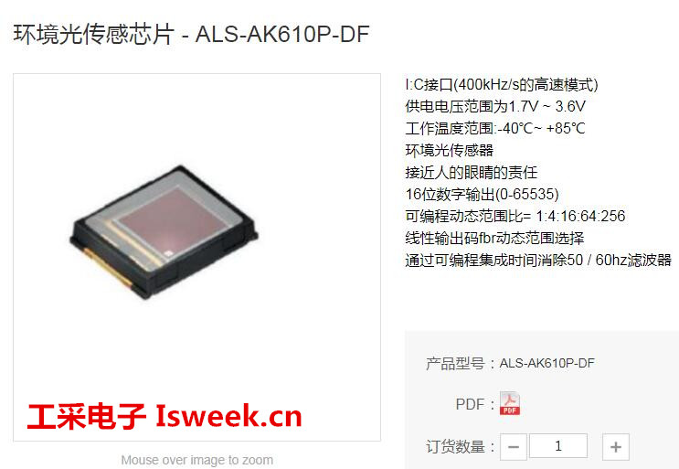 環境光傳感芯片 - ALS-AK610P-DF的特性: