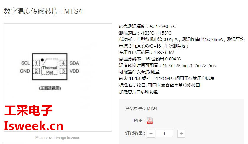 數(shù)字溫度傳感芯片?- MTS4廣泛應(yīng)用在智能穿戴、空調(diào)、電子體溫計、動物體溫檢測、醫(yī)療電子、冷鏈物流、倉儲、熱表氣表水表等多領(lǐng)域,歡迎登錄工采網(wǎng)咨詢。