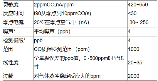 英國Alphasense高分辨率一氧化碳傳感器CO-B4具體性能如下: