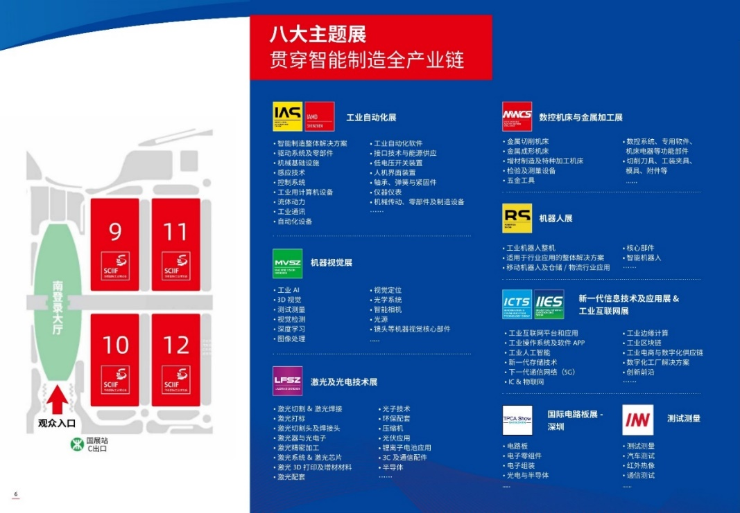 華南國際工業博覽會涵蓋:工業自動化展、機器視覺展、激光技術展、數控機床與金屬加工展、機器人展、新一代信息技術與應用展、工業互聯網體驗展、國際電路板展- 深圳八大主題展,從原材料到生產設備到信息技術再到集成制造,打通智能制造上下游產業鏈,是一場全且深,專且精的工業盛會,屆時將帶來最新產品、技術和解決方案。