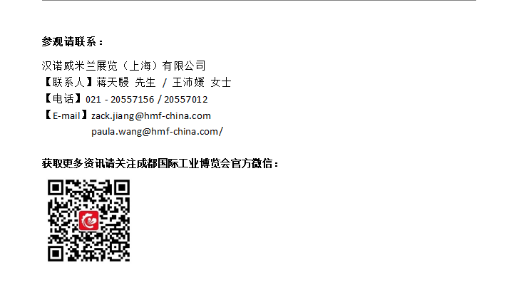 本屆成都工博會由成都市人民政府、四川省經濟和信息化廳共同指導,成都市經濟和信息化局、成都市博覽局、四川天府新區管委會共同支持,漢諾威米蘭展覽(上海)有限公司、東浩蘭生會展集團上海工業商務展覽有限公司、四川天府國際會展集團有限公司和四川鵬璨文化傳媒有限公司聯合主辦,將攜六大主題展區亮相,匯集全球600家參展企業,面積達60,000平方米。