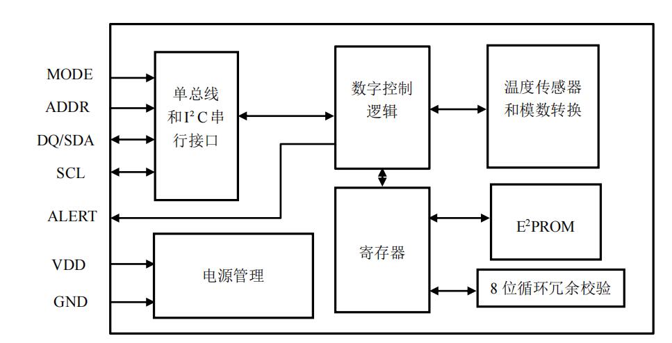溫度芯片感溫原理基于CMOS半導(dǎo)體PN節(jié)溫度與帶隙電壓的特性關(guān)系,經(jīng)過(guò)小信號(hào)放大、模數(shù)轉(zhuǎn)換數(shù)字校準(zhǔn)補(bǔ)償后,數(shù)字總線輸出,具有精度高、一致性好、測(cè)溫快、功耗低、可編程配置靈活、壽命長(zhǎng)等優(yōu)點(diǎn)。