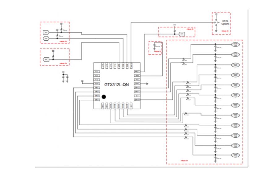 GTX312L具備自動(dòng)靈敏度校準(zhǔn)、超強(qiáng)抗干擾能力,可抗特斯拉(小黑盒)線(xiàn)圈干擾,可Pin to Pin替換TSM12;支持單鍵/多點(diǎn)觸控。GTX312L?芯片做智能鎖產(chǎn)品的時(shí)候的設(shè)計(jì)建議和注意事項(xiàng),根據(jù)項(xiàng)目形態(tài)不同會(huì)略有差異,可以根據(jù)客戶(hù)實(shí)際情況進(jìn)行調(diào)整。