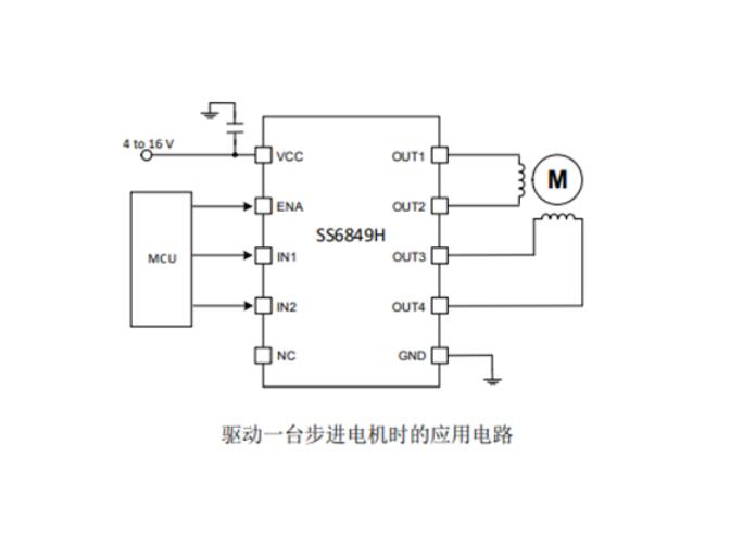 SS6849H內部有兩個獨立的H橋驅動器,每個H橋能夠提供較大峰值電流1A和均方根電流0.7A。支持4路PWM控制接口,導通阻抗為0.96Ω;這使得它能夠同時驅動兩臺直流電機,或一臺并聯直流電機,還可以用于驅動步進電機。步進電機驅動支持全步或半步,提供更多的驅動方式選擇。