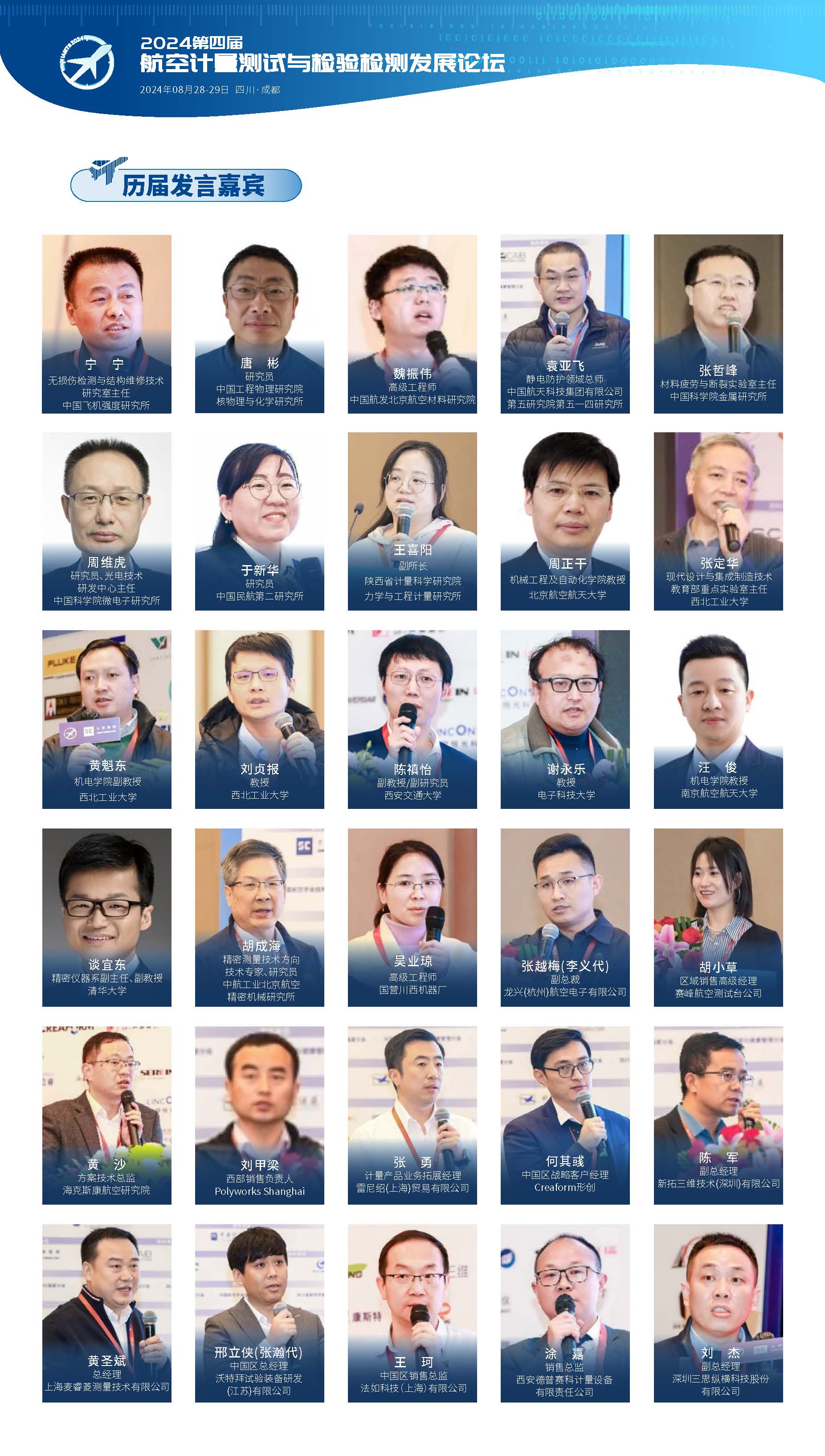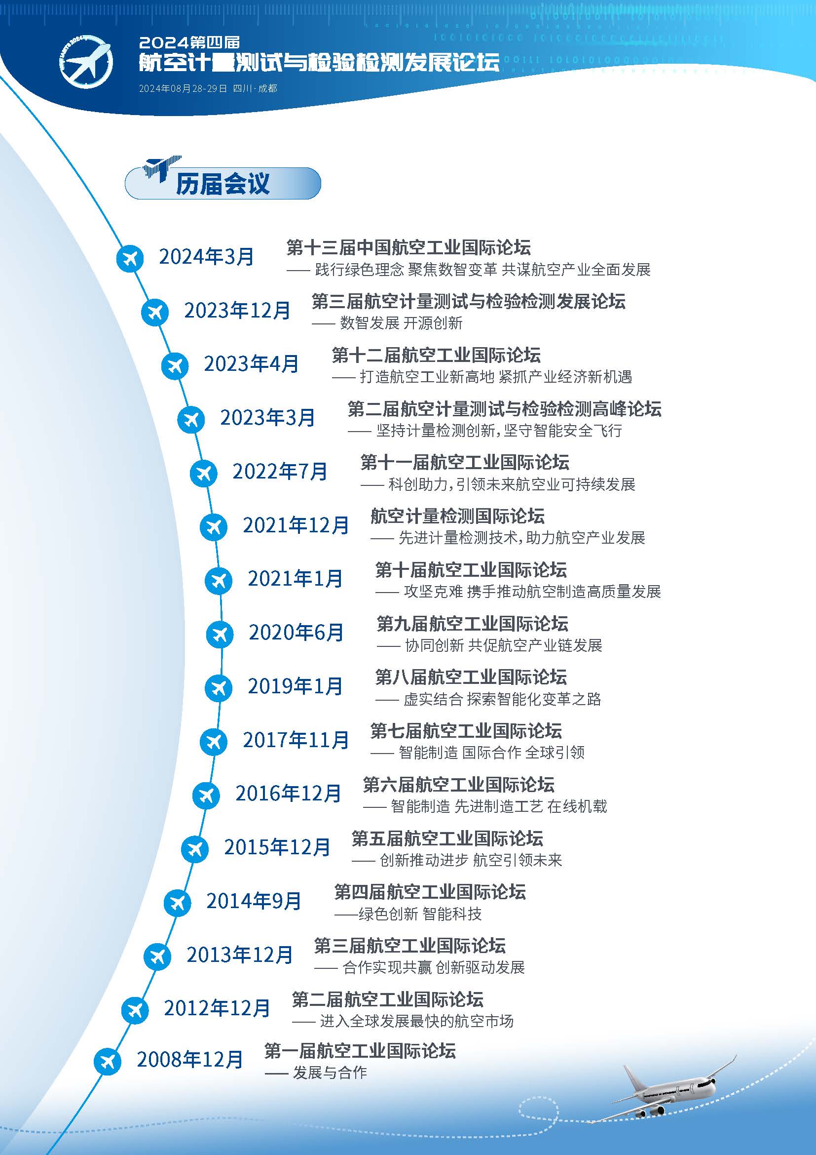 基于上述背景,“2024第四屆航空計量測試與檢測檢測發展論壇”將于2024年8月28、29日在成都召開。屆時,來自科研院所高校、飛機研制及運維單位、發動機制造企業、零部件企業、航材企業、航電企業、第三方檢測、計量檢測系統與設備供應商的專家、領導、學者將匯聚一堂,聚焦計量測試與檢驗檢測發展現狀和前沿技術,航空業全生命周期、全產業鏈、全溯源鏈的新型計量檢測保障體系,實現性能可達、質量可靠、成本可控,共同推動航空產業的高質量發展。