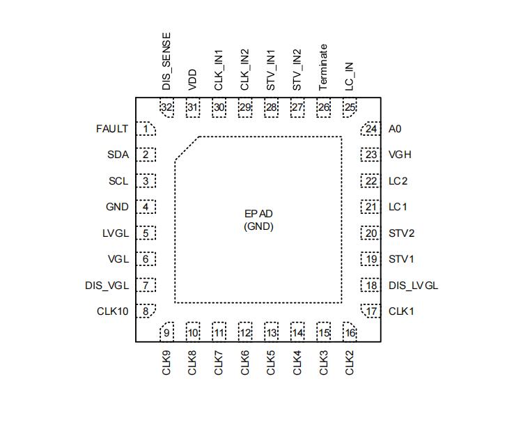 16 Ch水平移位器支持10-CH CLK,2-CH STV、LC1/2、DIS_VGL、DIS_LVGL
