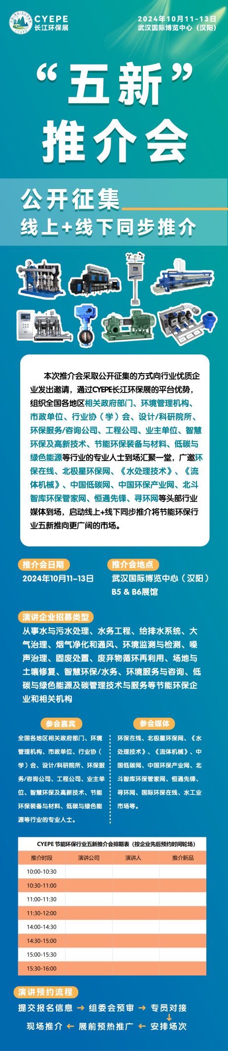為充分發揮CYEPE長江環保展資源優勢與平臺作用,加快培育和發展新質生產力,深入推動落實湖北省人民政府鄂政發〔2023〕8號文件《關于進一步深化制造業重點產業鏈鏈長制實施方案》、湖北省制造強省建設領導小組〔2023〕4號文件《湖北省加快發展節能環保產業三年行動方案(2023-2025年)》和湖北省民政廳2024年《共建長江經濟帶·助力湖北先行區》文件指示要求,秉持打造長江經濟帶節能環保產業一站式解決方案平臺的初心,推進“新工藝、新技術、新產品、新材料和新設備”行業五新的廣泛應用,CYEPE長江環保展組委會即日起正式啟動CYEPE節能環保行業"五新"推介會征集報名工作,致力為環保企業提供絕佳的產品推廣與技術交流契機,激發企業創新精神與市場活力,共促節能環保產業發展!