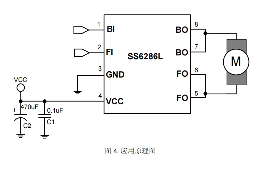 3)VCC輸入電容C2的選擇需依照VCC的電壓穩定性及馬達負載電流大小去選擇電容,如果VCC的電壓紋波。