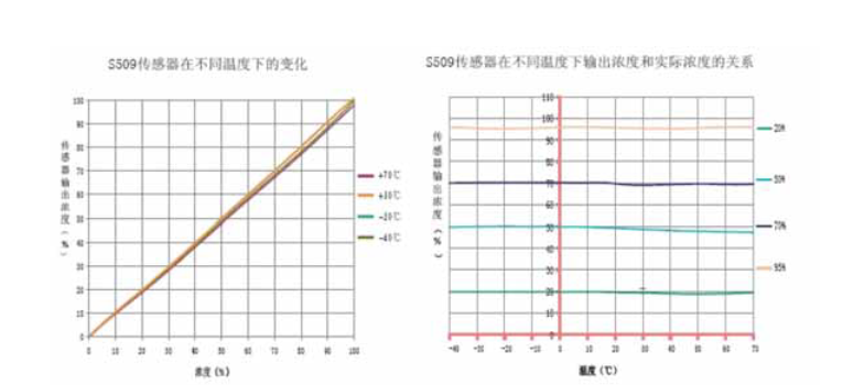 當(dāng)提供3.0VDC~6.0VDC 范圍內(nèi)電壓時,S509 紅外傳感器可以在-40℃~﹢70℃ 寬溫度范圍內(nèi)正常工作。傳感器向外提供模擬和數(shù)字輸出接口。用戶可以通過接口自動接收氣體濃度數(shù)據(jù)及執(zhí)行標(biāo)定等功能, 使用非常簡便