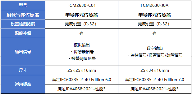 FCM2630-J0A和FCM2630-C01氣體傳感器模塊對比