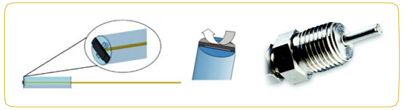 - 其次,傳感器容易安裝于冷卻系統中。FRI-NP傳感器安裝在不銹鋼棒上( 1 / 8 " ),該棒可以與Swagelock的NPT連接件一起提供。有些客戶喜歡使用自己選定的連接件(如CONAX公司的或其它公司的) ,這通常是很容易固定在SS傳感器棒上的。這種安裝方法, 系統的干擾小,結果也很好地體現了實際情況。如果客戶需要,也可以提供直徑小于0.032英寸( 0.8毫米)的祼版折射率傳感器(FRI-BA),可將此裸版傳感器安裝進更細的管中,用于FRI-NP傳感器尺寸不便安裝的地方。這兩種傳感器均可直接地進行連續檢測。